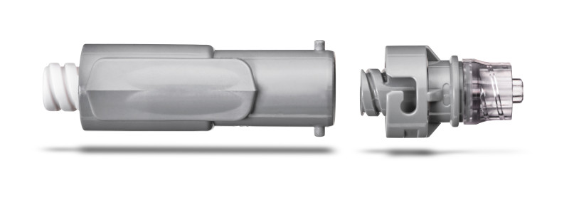 Qimomale est un connecteur de sécurité, un accessoire de cathétérisme désinfectable, antipique, en système clos. C'est un adaptateur sécurisé captif pour embout Luer-lock mâle ne se connectant que sur Qimofemale.