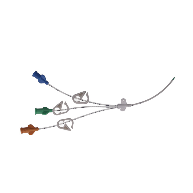 Multicath 3 (modèle pédiatrique) est un cathéter veineux central 3 lumières radio-opaque en polyuréthane, introduit par technique de Seldinger dans les veines jugulaires internes, sous clavières ou fémorales.A l'extrémité proximale, les trois voies du cathéter sont raccordées à des tubes prolongateur de différentes longueurs, chaque tube prolongateur est par ailleurs marqué "DISTAL", "MEDIUM" et "PROXIMAL", et comporte une embase de couleur différente afin de repérer facilement les différentes lignes de perfusion. Les prolongateurs sont munis de clamps Robert.